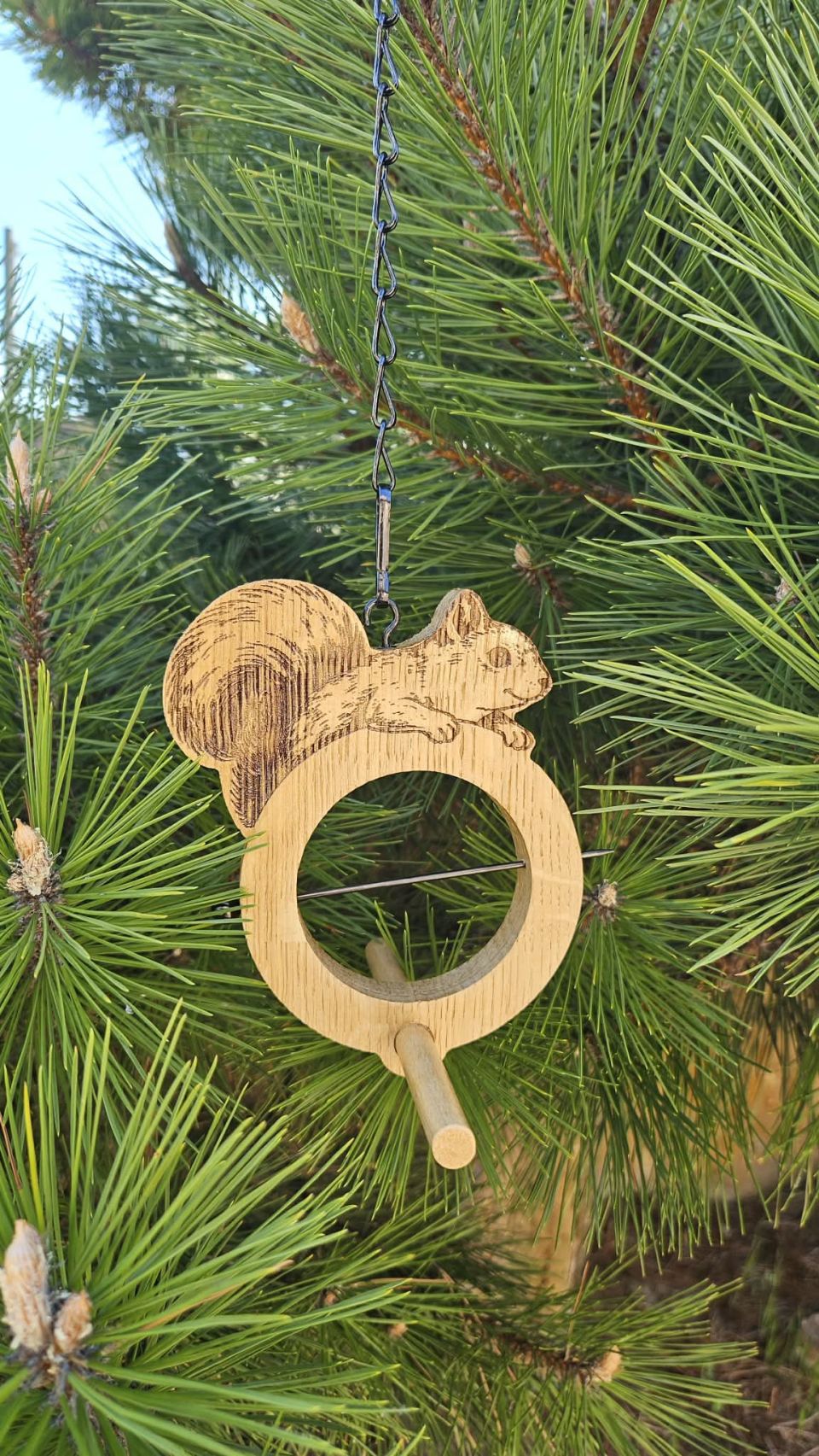 Dubové krmítko na příkrm ptáčků. Lze napíchnout kousky jablka, pomeranče, atd. Nebo předvrtat lojovou kouli. Velikost 14x10cm. Tloušťka 1,5 cm. Velikost díry 6cm.